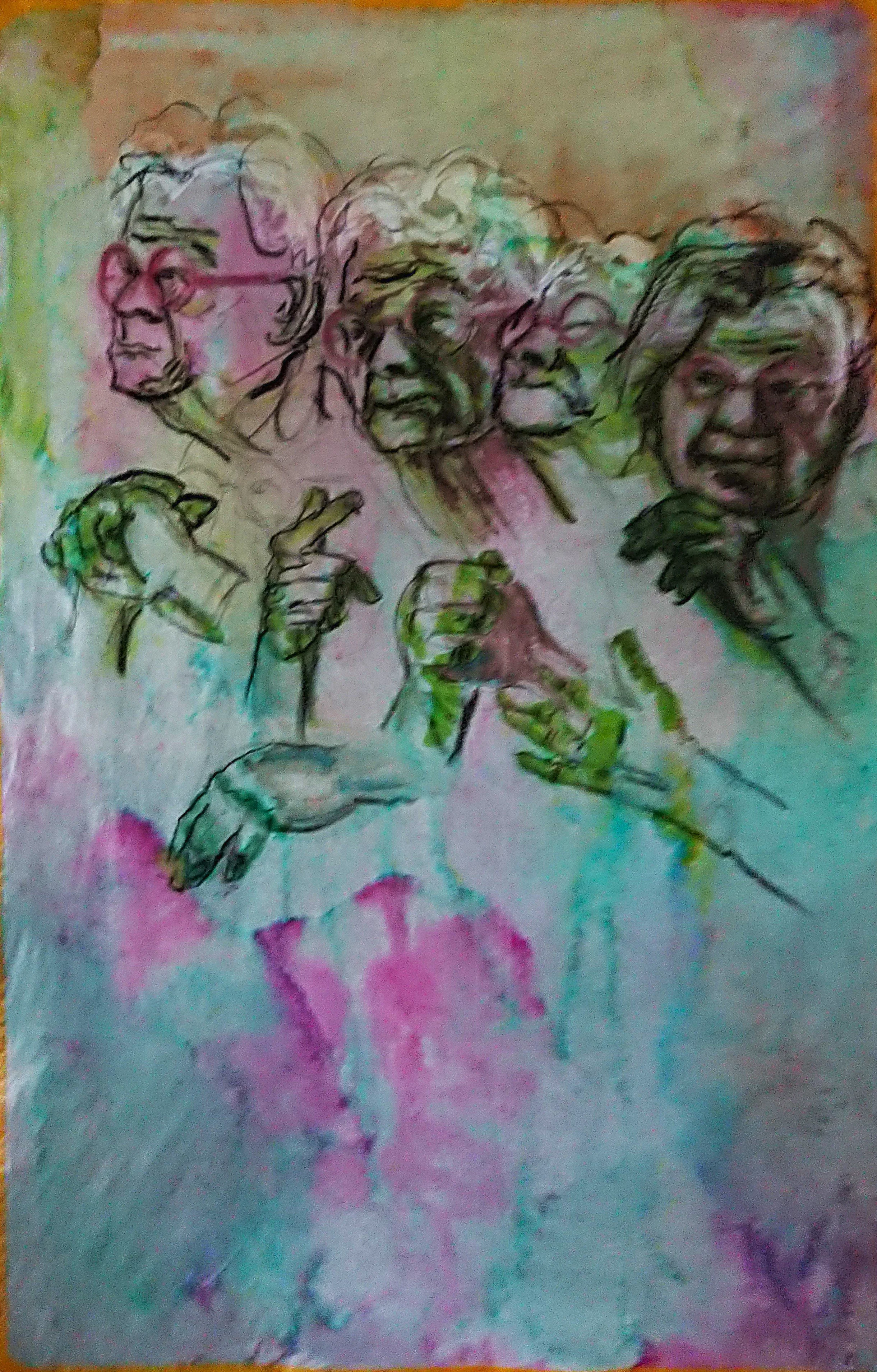 Cette série en cours de développement se consacre à la représentation de la figure masculine. Ce projet se veut complet, englobant la documentation de ma recherche technique, ma réflexion, mais aussi l’interview de modèles masculins autour de la question de l’expérience de la vulnérabilité chez les hommes. Ces entretiens mènent ensuite à la réalisation d’un portrait expressionniste à l’aquarelle et au fusain.